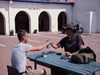 Die restlichen Häuser bestehen aus billigen Wänden und Blechdächern. Überall im Dorf sieht man verrostetes uraltes Bohrwerkzeug aus vergangenen Tagen und Menschen, die sicher mit dem Traum des „Reichwerdens“ nach Cooper Pedy gekommen sind und sich jetzt mit billig Jobs und Alkohol so durchs Leben bringen. Gerade dieseGoldgräberathmosphäre“ lies mich 4 Tage in diesem Ort verweilen. Und ich bereute keinen Tag in diesem Ort, der von so vielen skurielen Menschen bewohnt wird. Neben unscheinbaren Millionären, die durch die Opalfunde reich geworden sind, siehr man aber auch gestrandete Aborigines und weiße Glücksritter, die den Reichtum nicht erreicht haben. Und auch ich fand mein Glück in CP. Zwar nicht durch die mikrigen Opale, die ich gefunden habe sondern im hiesigen Bottle Shop (australische Getränkemarkt). Einer im Hostel erzählte mir, dass sie im Bottle Shop deutsches Hansa Bier verkaufen. Ich also nichts wie hin um für mich und Mads, den Dänen den ich hier wieder traf zwei Büchsen zu kaufen. Nur so des Gags wegen (Hansa Bier im australischen Outback-unvorstellbar). Nun gut, als ich die teuren Halblitterdosen (3 Dollar) bezahlen wollte, bekam der Mann hinter dem Verkaufstresen einen Anruf und kurz darauf sagte er zu mir: "Ich habe gerade einen Anruf von meinen Chef bekommen, der dich gesehen hat, wie du Hansabier kaufen willst. Er macht dir ein Angebot: Kein Mensch kauft das Bier, also wenn du alle Dosen die wir im Laden haben kaufst bekommst du die Dose für 50 Cent". Ich fragte: "Wie viel habt ihr?“ „28 Dosen!“ „Alles klar, einpacken! Ich nehme alle!“